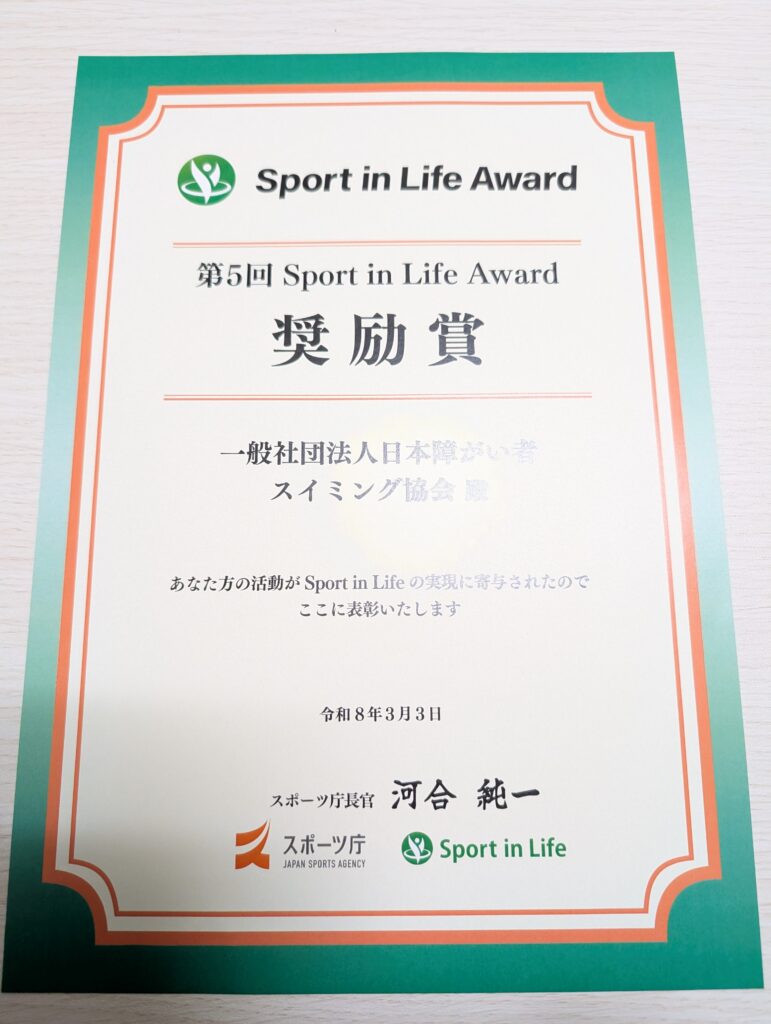 【第5回「 Sport in Lifeアワード」の奨励賞 受賞】